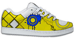 “Splurt” – Funky design with blue splurt and yellow shapes.